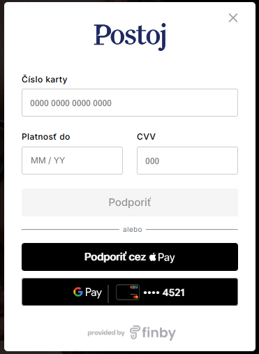 Nasadením finby Denník Postoj získal rýchlejší a prirodzenejší platobný proces, ktorý zostáva priamo v prostredí webu denníka a je konzistentný. Zároveň sa otvorila možnosť jednoduchých platieb cez Apple Pay a Google Pay vrátane nastavenia opakovaných platieb bez manuálneho zadávania karty, čo je na trhu stále výnimočné riešenie.
